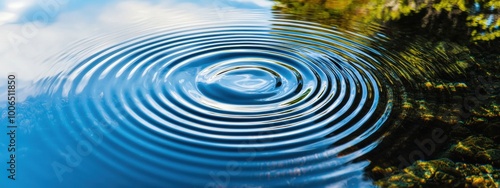 Stable Ripple Effect: A serene pond with concentric ripples expanding outward from a still center