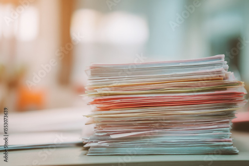 Stack of adoption paperwork with soft light, clean office background, and organized documents, representing LGBTQ family legal process and administrative tasks