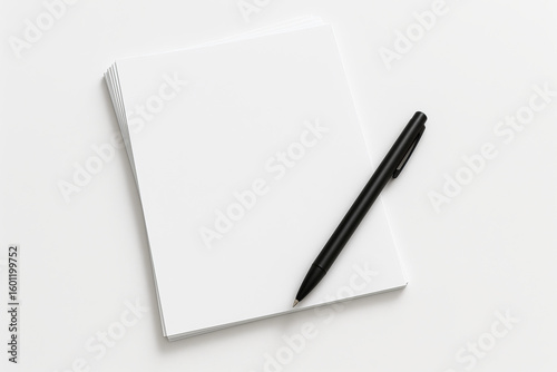 Stack of Blank White Paper with Uncapped Black Pen – Minimalist Writing and Document Concept Isolated on White Background