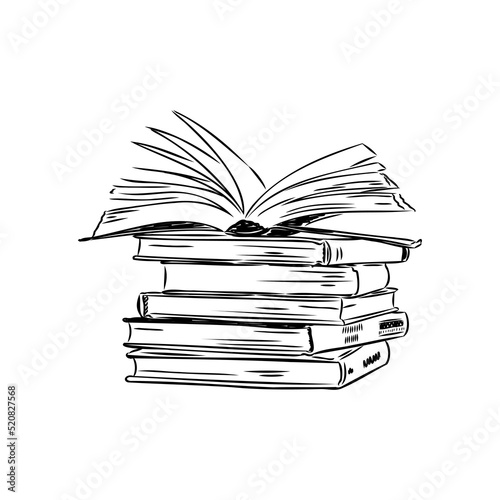 Stack of books isolated on white, Hand Drawn Sketch Vector illustration.