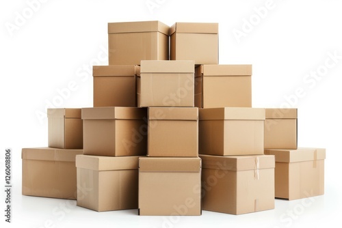 Stack of brown cardboard boxes for moving day with stuff indoors. High quality photo