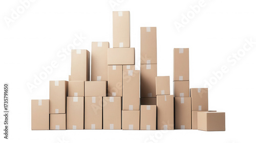 Stack of cardboard boxes arranged in a pile against a plain on transparent background