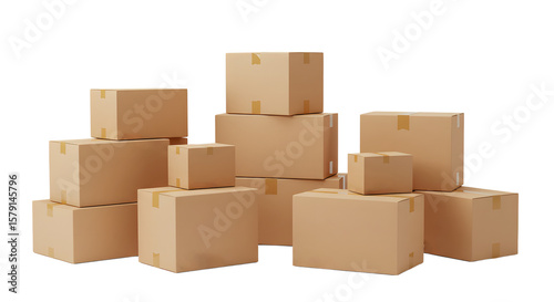 Stack of Cardboard Boxes: E-commerce Shipping, Logistics, and Warehouse Storage Concept; Neutral Beige Tones, Clean Minimalist Style, Efficient and Organized Mood.