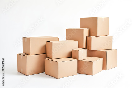 Stack of Cardboard Boxes on White Background
