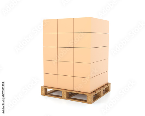 stack of cardboard boxes. Stacked cardboard boxes on wooden pallet isolated on white background. Warehouse shipping logistics, packaging, cargo distribution, delivery and export storage concept.