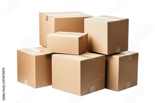 Stack of cardboard boxes with shadow for mockup isolated on transparent background