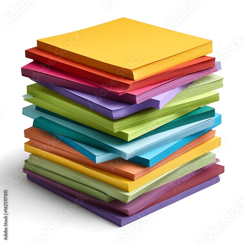 Stack of colorful paper napkins in various bright shades isolated on white background