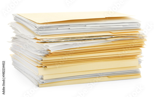 Stack of file folders with papers isolated on white