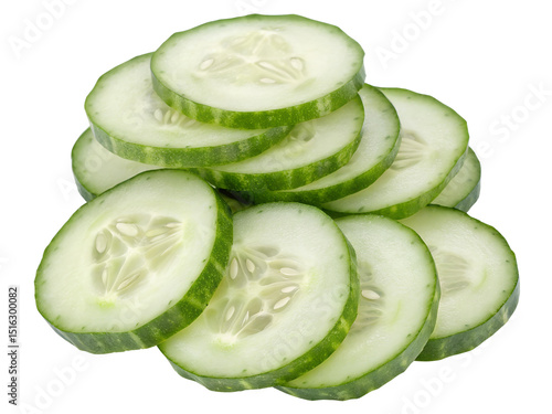 Stack of Freshly Sliced Cucumber Isolated on transparent background, Isolated Png file, Cut-out, Isolate Png, No Background, Isolated object