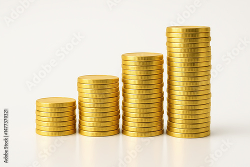 Stack of Gold Coins Increasing in Height From Left to Right, Investment and Savings Concept