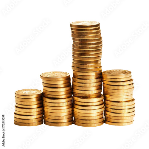stack of golden money coins isolated on white or transparent png