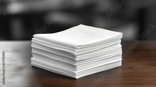 Stack of paper napkins with empty space for logo or design. Mockup image