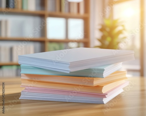 Stack of Papers on Wooden Desk in Library