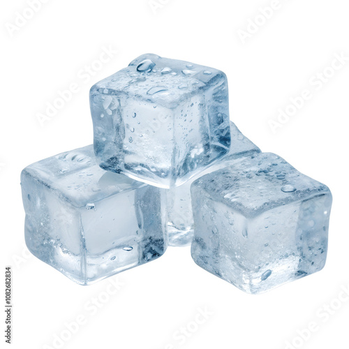 Stack of Transparent Ice Cubes isolate on transparent background cutout, PNG file, Cutout file
