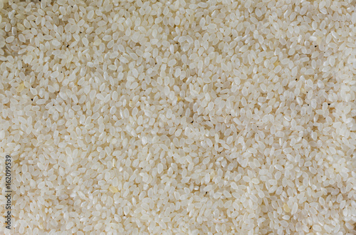 Stack of uncooked Japanese rice. Close up of Japanese rice concept for background and wallpaper. Macro concept for background and texture. Copy space of uncooked Japanese rice on table for background.
