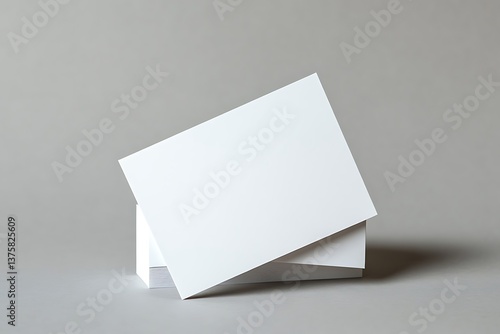 Stack of White Business Cards Plain Mockup Gray Background Stationery Branding