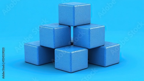Stacked blue blocks on a vibrant blue background showcasing creativity and playfulness in a simple design