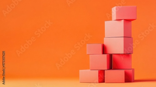 Stacked boxes create striking visual against vibrant orange background
