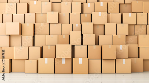Stacked cardboard boxes create an organized storage space in a warehouse setting during daylight hours