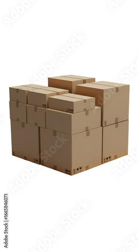 Stacked Cardboard Boxes Illustration Isolated on Transparent Background