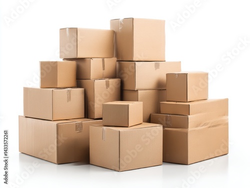 Stacked cardboard boxes pile on white background