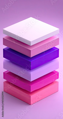 Stacked, colorful 3D squares creating an abstract, gradient design