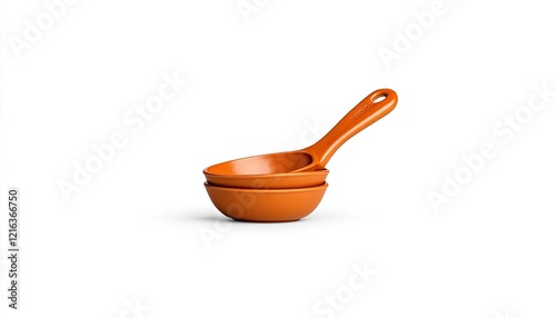 Stacked orange measuring cups on a clean white background, ideal for cooking and baking applications