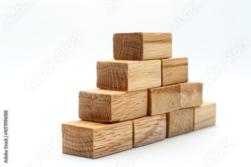 Stacking Blocks: Wooden Blocks Pyramid Staircase on White Background Symbolizing Success and Growth