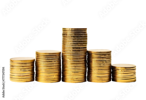 Stacking gold coins and money bag of tree with growing . Sapling leaves growing from the gold coins placed in a bag in the forest.