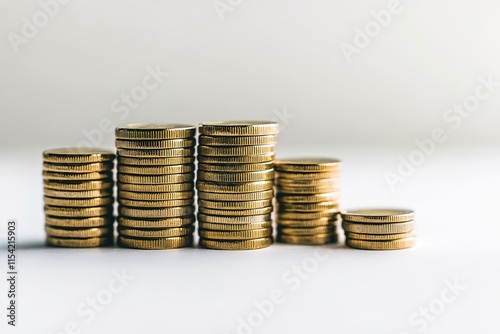 Stacks of coins arranged in ascending order, showcasing wealth a