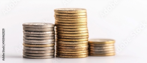 Stacks of Coins in Various Heights on a Clean White Background