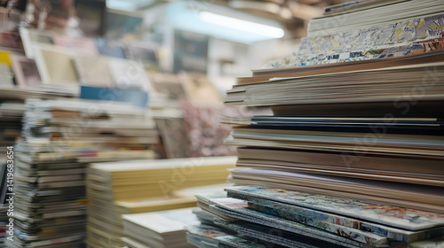 Stacks of Colorful Magazines and Publications at a Busy Retail Space Filled with Print Media and Literature in a Vibrant City Environment