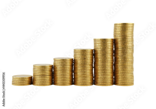 Stacks of golden coins isolated on transparent background