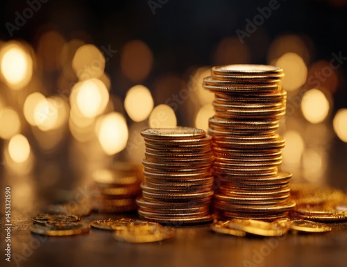 Stacks of Golden Coins Showcasing Wealth, Prosperity, and Financial Success, Achieving Economic Stability and Security through Smart Investments.