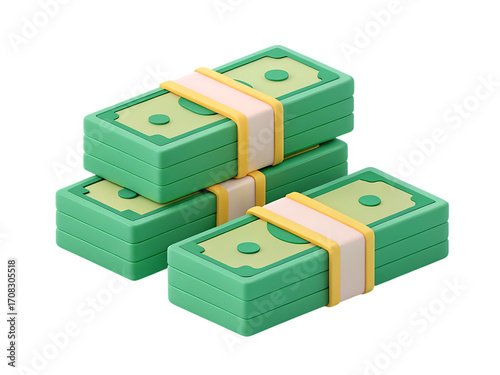 Stacks of Money Green Currency Illustration white background, isolated on transparent background