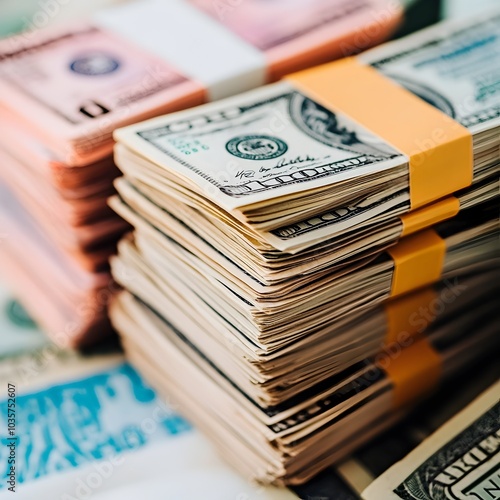 Stacks of Paper Money Symbolizing Wealth and Financial Success