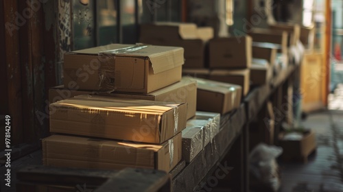 Stacks of Parcels Awaiting Delivery from Online Marketplace