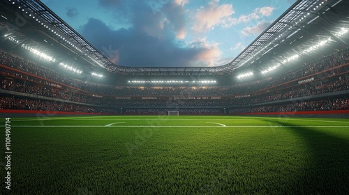 stadium alive excitement as spectators fill stands evening skies. floodlights shine brightly green field creating vibrant atmosphere.