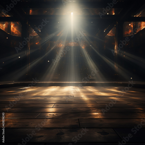 stage with spotlights on wooden stage background background, in the style of raphaelle peale, monochromatic compositions