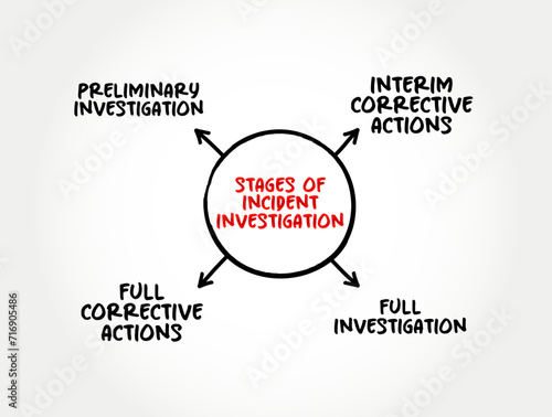 Stages of Incident Investigation - process for reporting, tracking, and investigating incidents, mind map text concept background