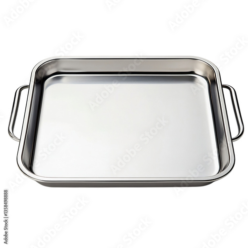 Stainless Steel Baking Tray with Handle Isolated on Transparent Background