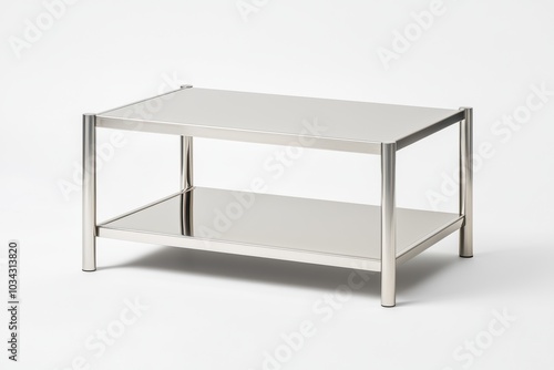 Stainless steel table with lower shelf, clean and minimalistic, ideal for commercial kitchens or industrial environments focused on functionality