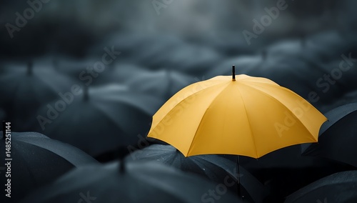 Stand Out From the Crowd With a Unique Yellow Umbrella Amidst a Sea of Dark Umbrellas