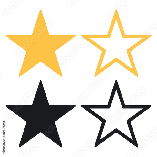 Star rating vector graphics yellow black outline design element clip art icon symbol shape decoration 100