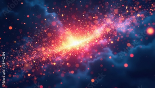 Starburst explosion of colorful lights in the sky , explosive colors, evening sky