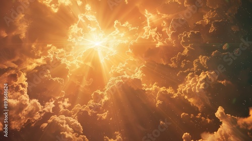 Starburst of sunshine piercing through ethereal clouds in heaven