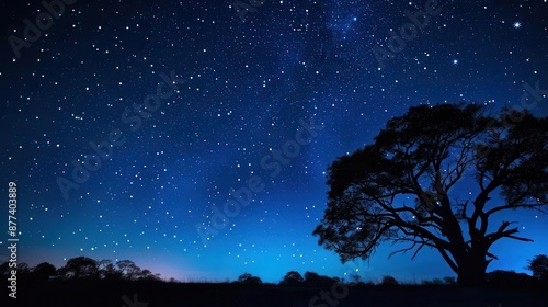 Stargazing under a clear night sky, rich blue hues with stars, astronomy nights, serene and inspirational