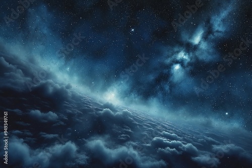 "Starry Night Sky Over Clouds"