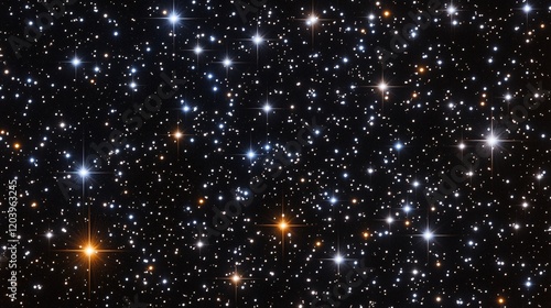 Starry Night Sky with Bright Blue and Gold Stars Sparkling in the Darkness