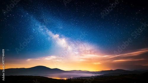 Stars illuminating night sky, open horizon, scattered clouds, peaceful darkness.
